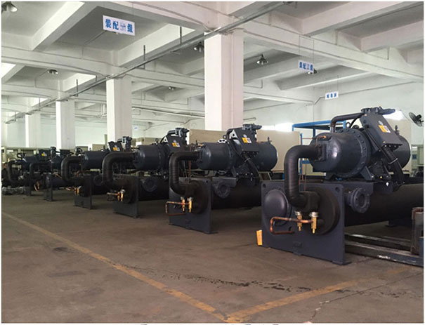 水冷螺桿式冷水機(jī)生產(chǎn)車間